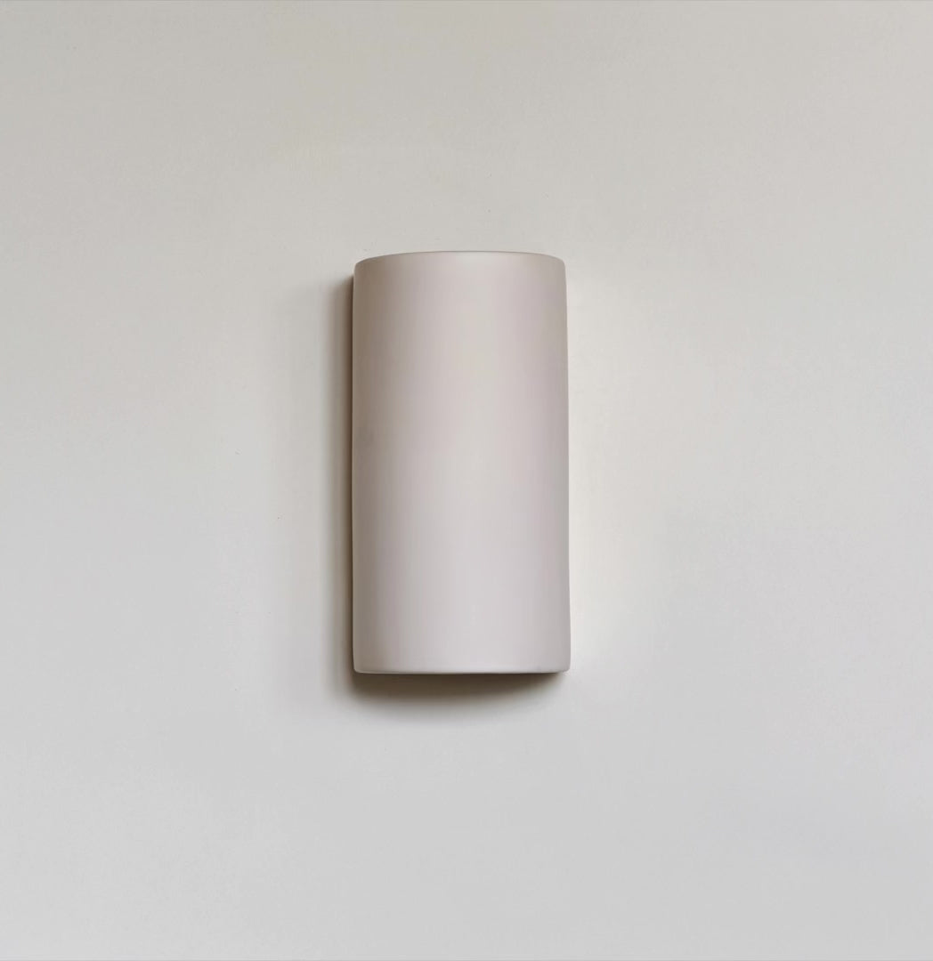 Featuring clean lines and a minimalist silhouette, this wall sconce complements a wide range of interiors. Available in a selection of natural tones and soft glazes (see our shop for current options), it gently illuminates your space with a warm and calming glow.